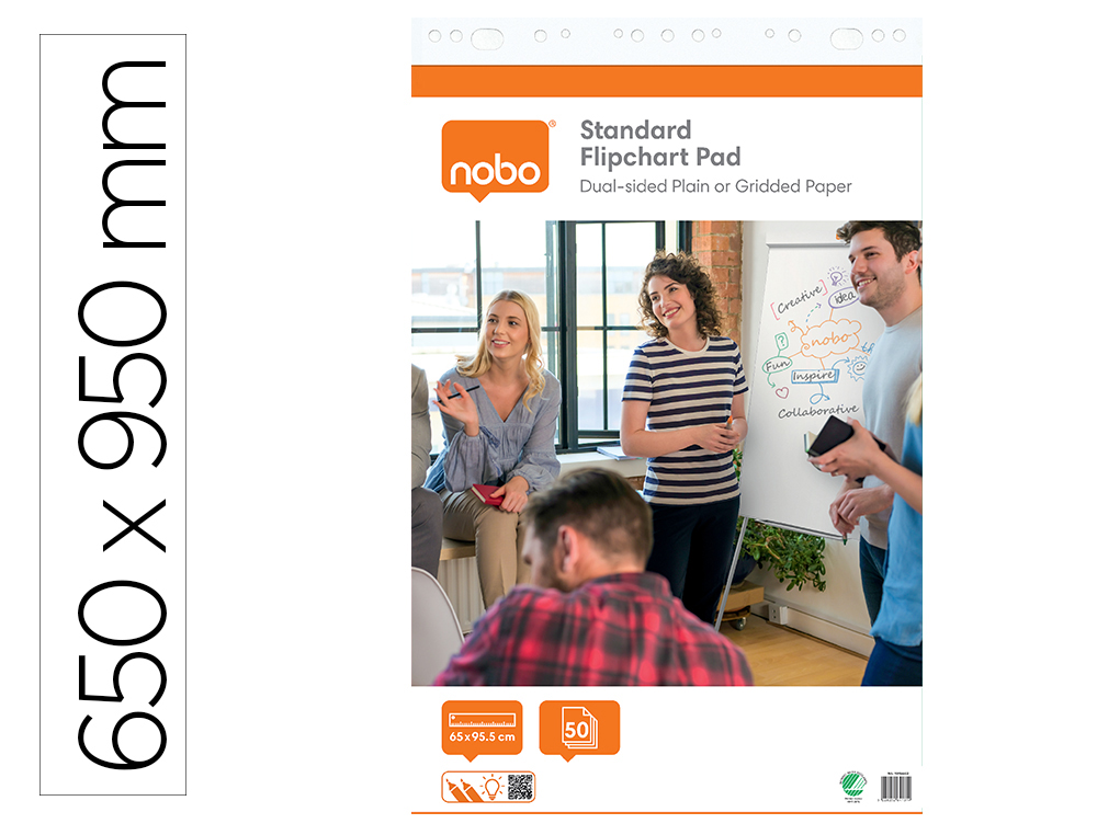 Este bloc de papel reciclado combina funcionalidad y sostenibilidad, ideal para reuniones, congresos y sesiones de trabajo colaborativo. Con hojas de gran tamaño y una combinación de formatos cuadriculado y liso, ofrece una superficie versátil y de alta calidad para anotaciones claras y visibles, facilitando la comunicación efectiva en cualquier entorno profesional o educativo.
