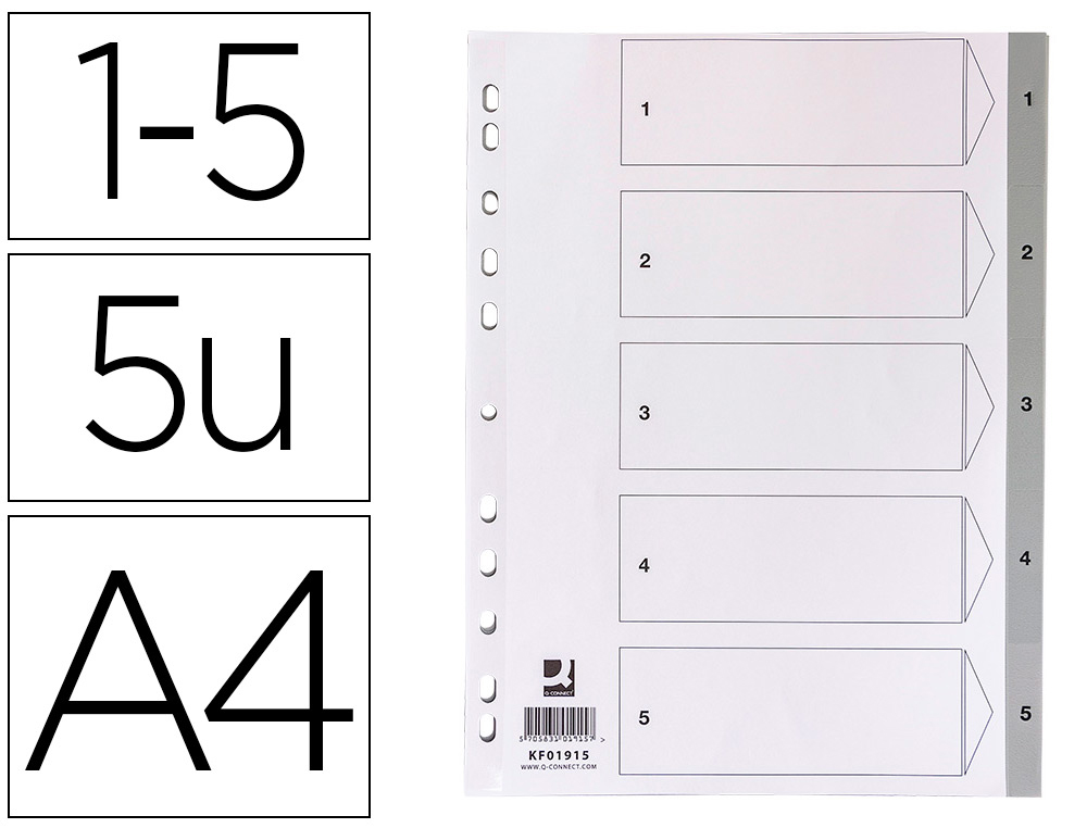 Optimiza la organización de tus documentos con este juego de separadores numéricos Q-Connect. Fabricados en plástico de alta calidad, ofrecen una solución resistente y duradera para clasificar y ordenar tus papeles de manera eficiente. Perfectos para oficinas, escuelas o cualquier entorno que requiera una gestión organizada de archivos, estos separadores son una adición esencial para tus necesidades de papelería.